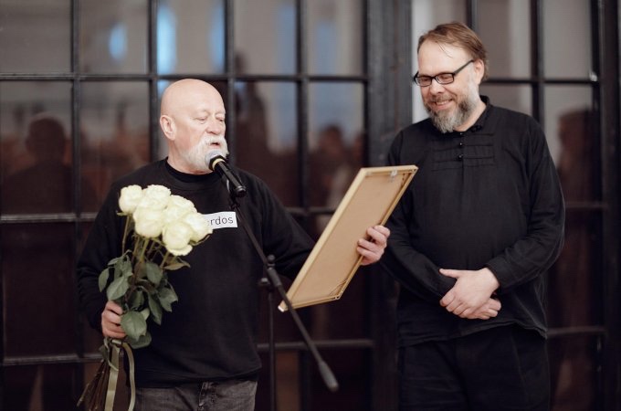 Президент Союза архитекторов России Николай Шумаков поздравляет юбиляра